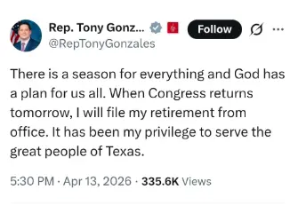 Tony Gonzales (R-TX) should have resigned months ago. He is the disgraced Congressman who had an affair with a much younger female staff member. The female staff member ended up setting herself on fire and killing herself last year.
