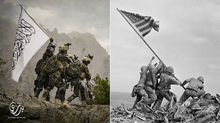 Elite Taliban unit wearing US gear appears to mock iconic American WWII photo