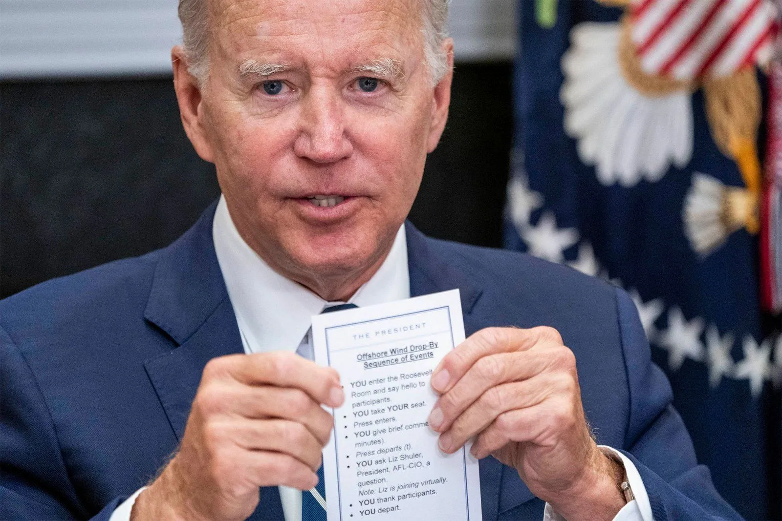 ‘YOU take YOUR seat’: Very specific cheat sheet reminds Biden how to act