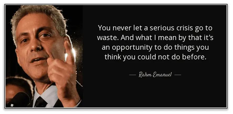 The folks on the left will have you all believe the "Wuhan Virus" is Trump's Katerina. And why not? As one has stated with full confidence, "Don't let a serious crisis go to waste." As another will tell you that, "Disruption generates opportunity." And that is exactly what these Democrats are harnessing to the American people.