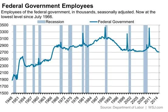It's libturd mathThat graph is wrong then or some one don`t know how to read one. Since when did 2500, become less than 2700. You go up from 1966 it is 2500, where 2014 is 2700.Total US Government employment, by year, from 1961 thru 2014...