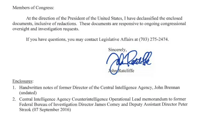 DNI declassifies Brennan notes, CIA memo on Hillary Clinton 'stirring up' scandal between Trump, Russia