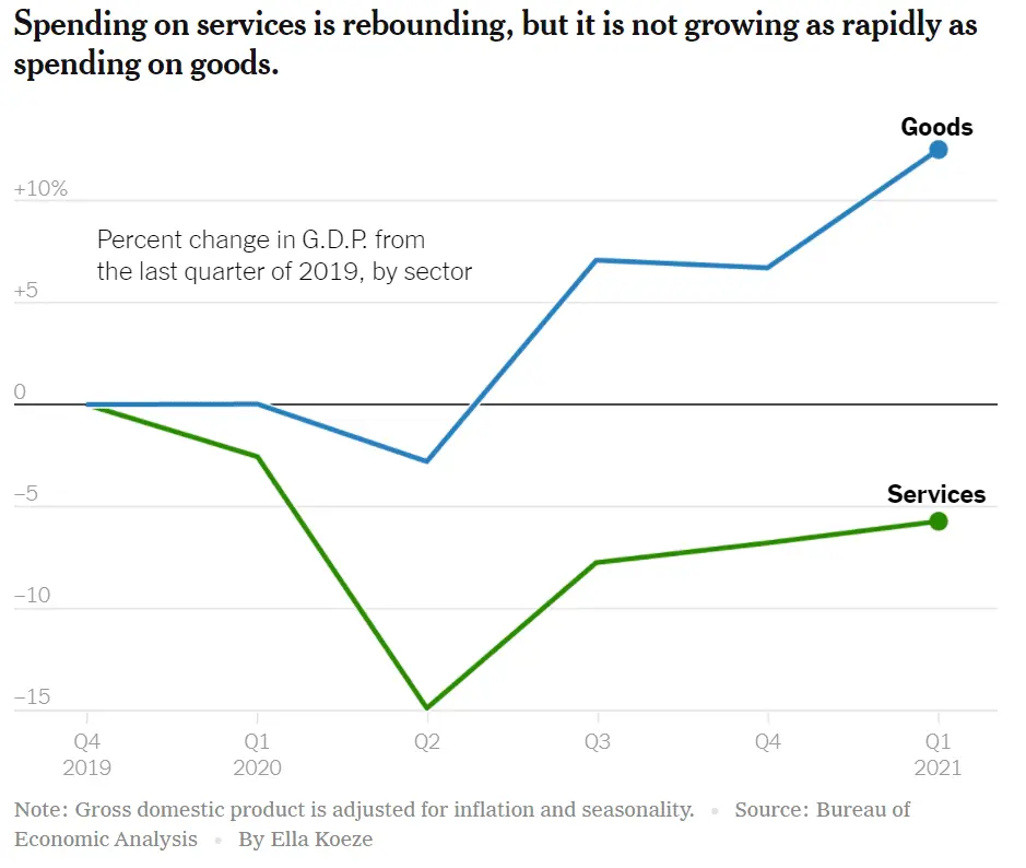 What drove the first-quarter economy: spending on goods. (Published 2021)