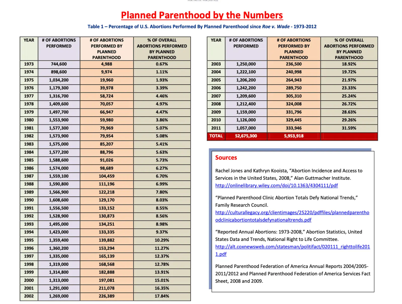 Planned parenthood has managed the murders of at least 10% of the 52,675,300 abortions up to 2011.