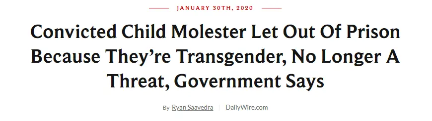 Convicted Child Molester Let Out Of Prison Because They’re Transgender, No Longer A Threat, Government Says