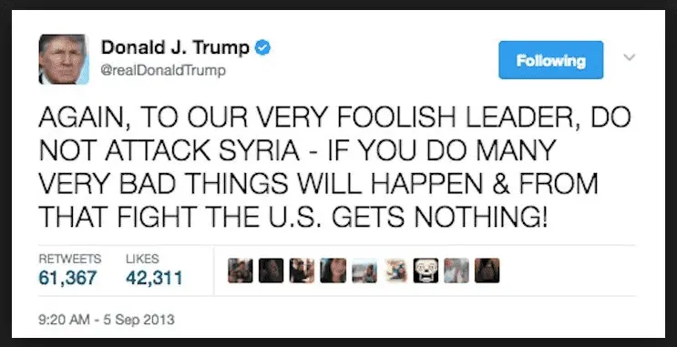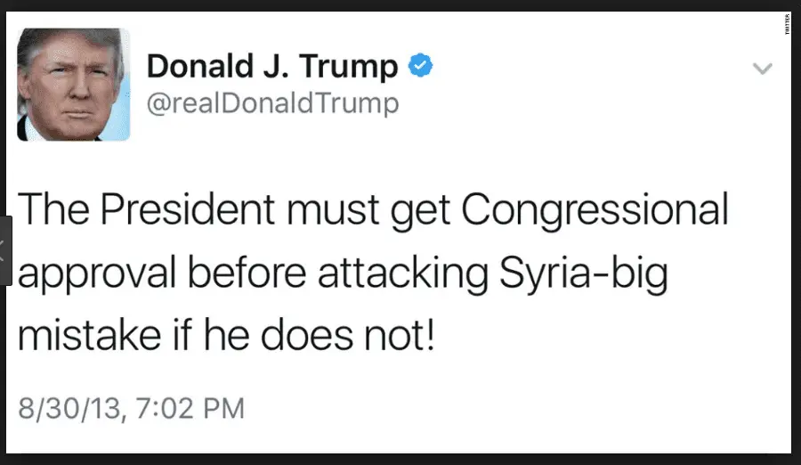 What would be worse is that the same things we expect our kids to learn, know, appreciate, and internalize would be the subject of a maelstrom of tweets decrying the “waste of time” knowing such things would be. The same way he used to decry Obama’s actions in Syria before he became President…