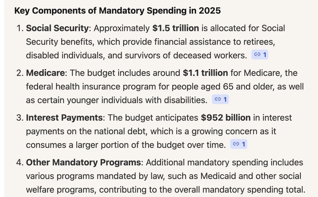 So?Discretionary spending was $1.8T for 2025. Mandatory spending was $5.1T. So that left a $1.9T deficit to start.