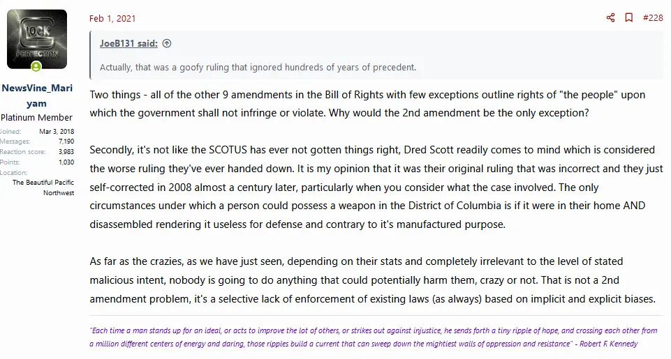 Is it possible for you to post where the individual justices indicated that the 2nd amendment is an individual right and not one that must be connected to being a part of a militia or anything other than an individual right? I wasn't able to find anything but you are apparently more knowledgeable on this case than I am.
