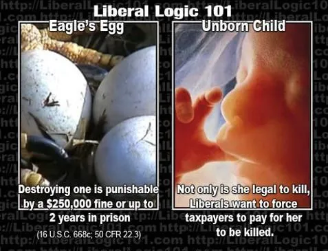 Your first supposedly clever bit is the Eagle egg. Those laws passed when the symbol of our Country, the bald eagle, was facing extinction. Because of those laws the numbers are increasing even today. Humans are in no way endangered. Our numbers are increasing wildly.