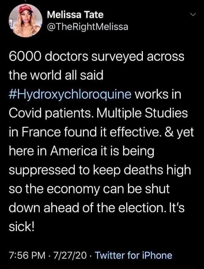 I find it compelling.I’m not ignoring Dr Risch, I’ve responded why I don’t find his case compelling. You never read the article so I’m not sure what you’re looking for here.why are you singling her out and ignoring the rest of them including Dr risch???What lies? That lady Stella Immanuel is a little crazy.when did I say I didnt read it???Why do you want me to comment on an article you didn’t even bother to read?it isnt about me,,so stop deflecting,,,You didn’t read the article, did you.you tell me,,,Did he mention any of the negative trials in the article?prove it,,,Cherry picking positive studies which have some questionable characteristics and are out of line with the best available data.what was cherry picked???only because what I provided you proves you wrong,,,I don’t have you on ignore, I just don’t have much to say to you.he responded a few comments ago, so he doesnt have me on ignore,,at least 20 minutes ago,,,he has you and me on ignore. we beat his fugley ass. therefore, he didn't read your article, nor will he respond.you mean like the link I gave you from Dr Risch proving you wrong on all accounts of the topic at hand???Except my link shows that it works in practice. Links don’t work if you don’t read them.What’s your experience that says masks are just for optics?So now you don't believe me? Excellent. I had firsthand experience. You're discussing theory.God I wish people would just stop pretending they know what they’re talking about.Masks are just there for optics. Disease is real. I had it.BTW, I don't believe any numbers coming out today. all bullshit. nothing of value or logic. if masks worked then the masks failed if the count went up. there isn't any other way to look at it. the compliance is by 90% of people. fk, the stay at home participation was worse. But yet, the numbers are rising with masks. How can that even be logically? start naming places people frequent where there have been reported outbreaks. none. zip, and the governors are still talking about stricter restrictions. fk them and their administrations. Fake numbers all of them. I say prove it. BTW, if masks work why is it my glasses fog up when I wear one? why do they stick a nine inch swab into one's head rather than a swab from the mouth? anyone else curious? just asking.It didn't but we have the disease under control. If people were healthier we would have COVID under control too. We are too fat.