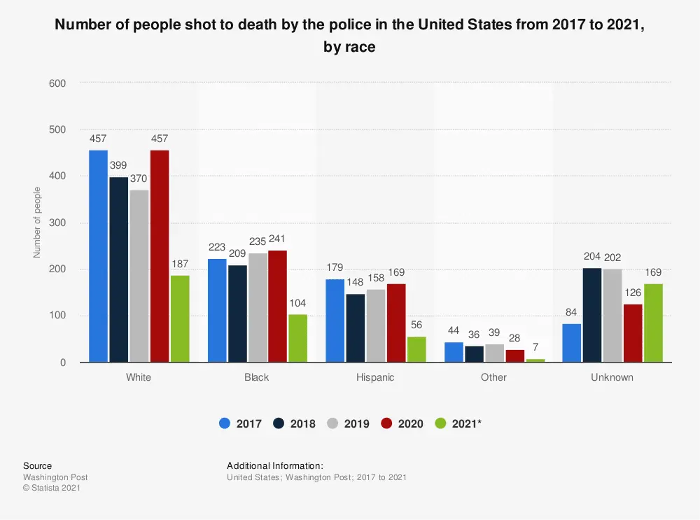 Raw numbers never tell the whole story.“but that's really hard to do when police can pull you over and murder you with impunity, because of the color of your skin.”