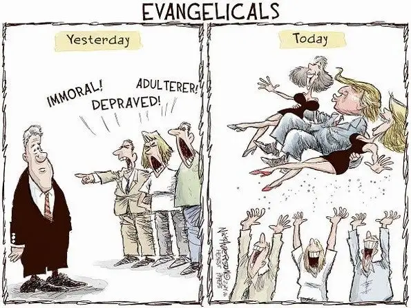 Obviously character doesn't matter to them If they can support a scumbag like trump.No doubt evangelicals have become a major force in politics. Their rise to power was fueled by groups like the Moral Majority and their insistence that character matters. Jimmy Carter was said to be unfit for the presidency because one of his interviews was published in Playboy magazine. Clinton's affair with an intern was seen as a personal affront to all that is good. With Trump, character doesn't seem to matter. Evangelicals are even proud of his lapses in honesty claiming that God is using a flawed man to do his will. Does character still matter, or does it just not matter for trump?
