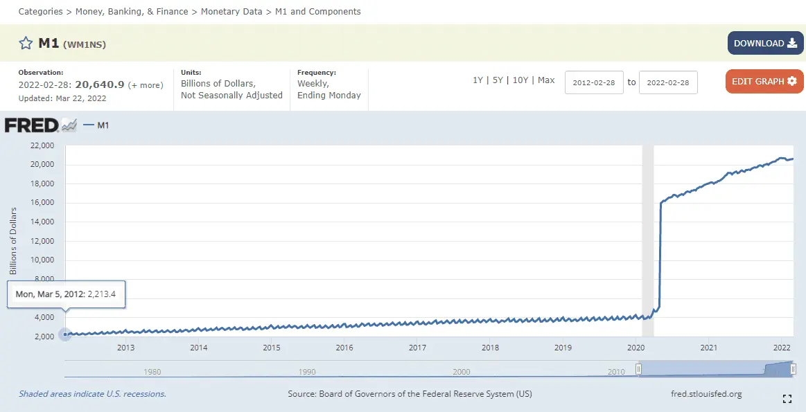 Looks like M1 went from about $2.2 trillion on March 5, 2012