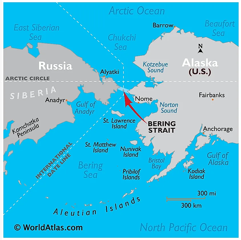 So?Alaska was sold to us by Russia. Part of the Bering Strait still is Russian waters.