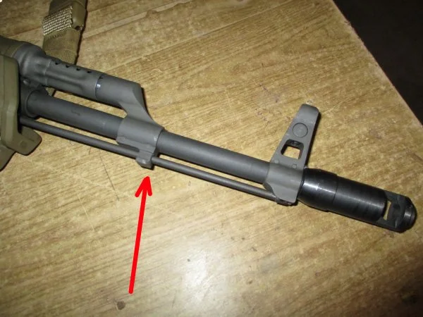The bayonet lug is that small piece of metal about midways or toward the end of the barrel...