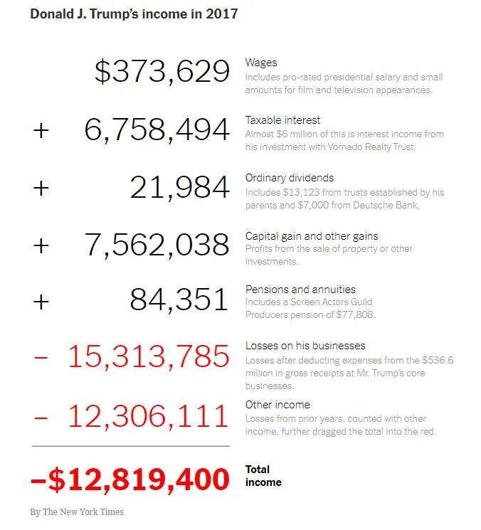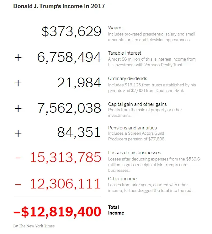 In 2017, Trump's pre-credit tax liability was $7,435,857.