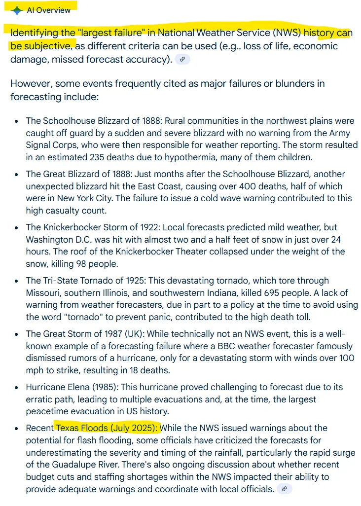 Ie. the nws did not forecast accurately or provide a range that warned Americans they could die.