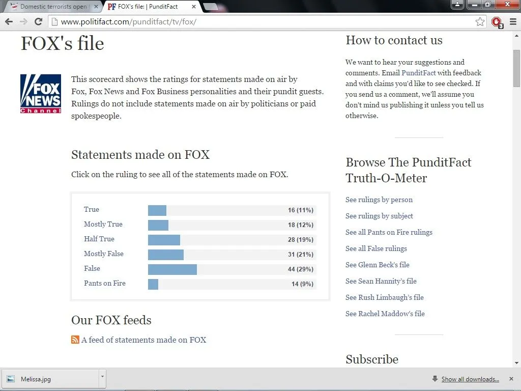 Interesting. I checked Fox News stats on Politifact and it looks like they lie more than they tell the truth.