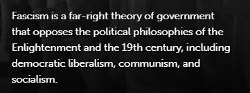“fascism, properly understood, is not a phenomenon of the right at all. Instead, it is, and always has been, a phenomenon of the left. This fact—an inconvenient truth if there ever was one—is obscured in our time by the equally mistaken belief that fascism and communism are opposites. In reality, they are closely related, historical competitors for the same constituents, seeking to dominate and control the same social space.”