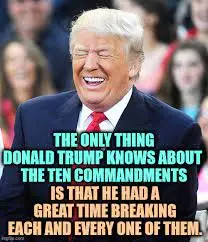 Yes everyone who sees the 10 commandments immediate thinks about which ones Trump has broken….
