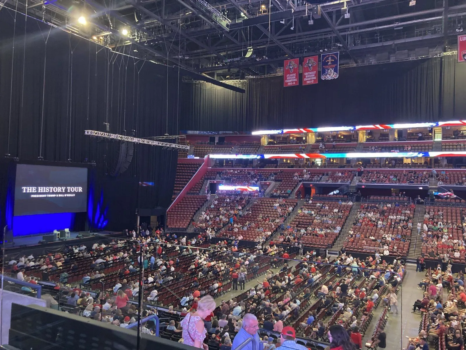 Empty seats were seen at the FLA Live Arena in Sunrise, Florida, for the first stop of Trump and O'Reilly's "History Tour."