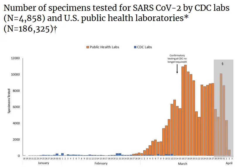 Early on the CDC could only do 200 to 300 tests a day. After the FDA approved commercial lab tests the test capacity today is over 200,000 tests/day.