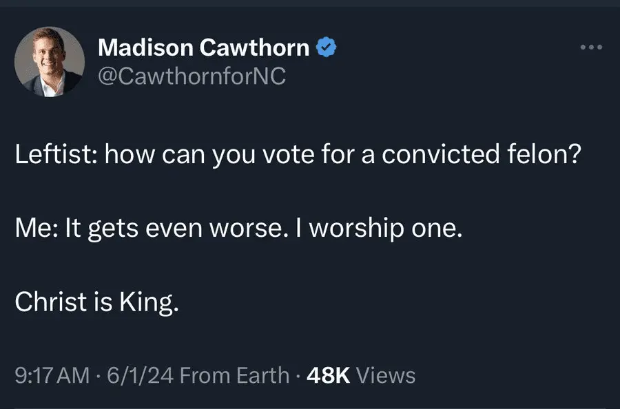 An element of Trump’s crime was to cover up extramarital sex he had with porn star Stormy Daniels while his wife was home nursing their infant son; that he consummated this affair without protection; that if he’d impregnated her, he’d have paid for her abortion in exchange for her signature on a non-disclosure agreement; and that he now seeks to tell every woman in America if and when she can have an abortion.