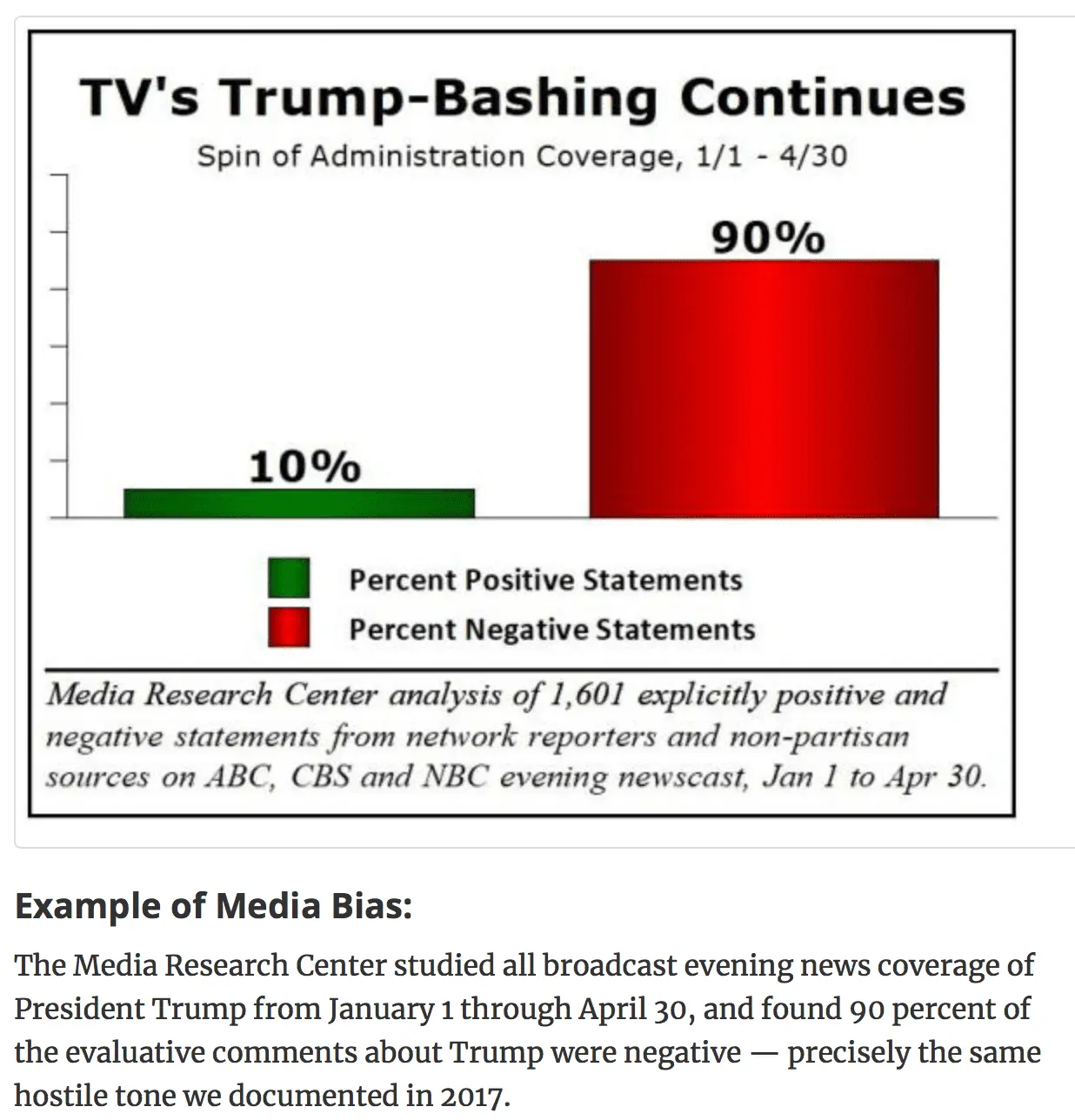 The study found that in Trump's first 100 days in office, the tone of the news coverage of the president has been a whopping 80 percent negative to 20 percent positive.