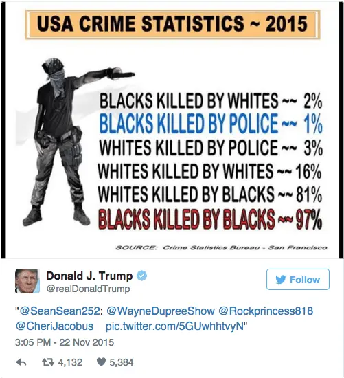 More: Donald Trump Tweets A Wildly Inaccurate Graphic To Portray Black People As Murderers