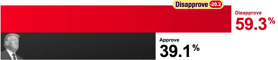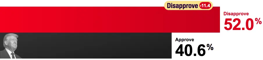 Trump's numbers on the economy—once considered a relative strength—remain weak. The latest poll shows 40 percent approval and 56 percent disapproval.