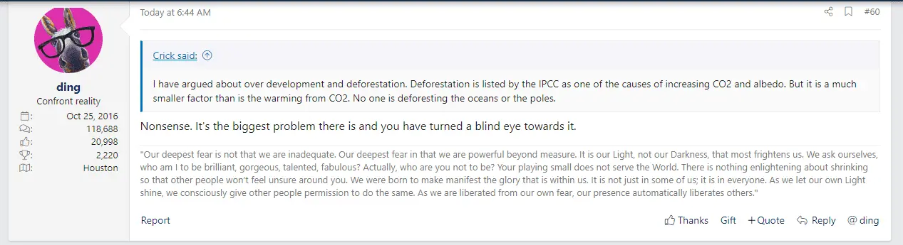 For ****'s sake. How about post #65, IMMEDIATELY ABOVE.Can you please show me where I said, deforestation is the biggest problem there is?