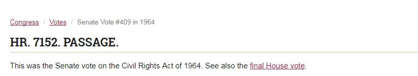 ^^^^ That 1964 Civil Rights Bill only passed because the Republicans voted for it, ALL the Southern Democrats except ONE - who a number were in the KKK - they voted against it, if it was not for the Republicans that Civil Rights Bill would have been defeated in The Senate.