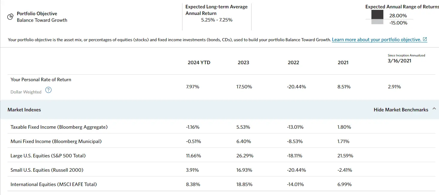 Yes yes if one could risk it and time the markets they could have made even more the last two years in Large Cap. This below is actual todays' numbers. Real life. Real working taxpayer accounts with no time to micro-manage it. 2022 was horrible.