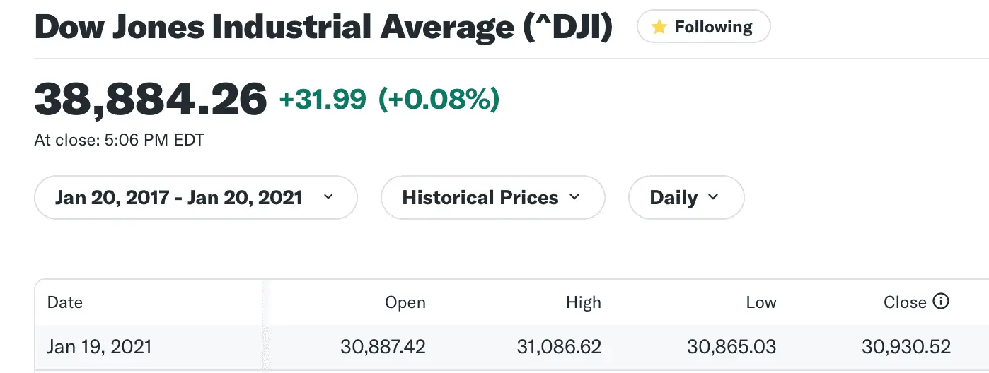 And FYI - Dow went up 34% under Trump.