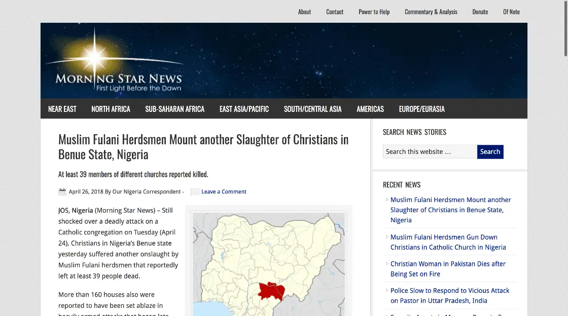 Muslim Fulani Herdsmen Mount another Slaughter of Christians in Benue State, Nigeria - Morningstar News