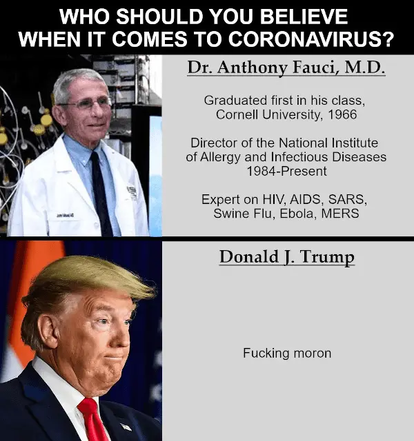 Fauci was appointed by Reagan, awarded a medal by Bush Jr. and trusted by Obama. He is the able general...