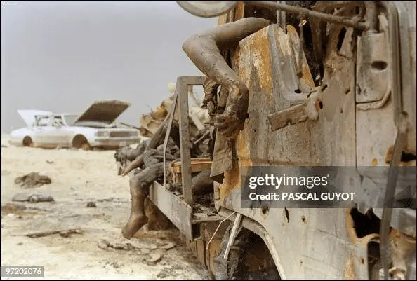 Um, those people were invaders who invaded Kuwait and were trying it take it over. They were killed when they tried to run away. They found numerous items stolen from Kuwaiti citizens among the dead. They had killed, tortured and terrorized Kuwait. They had it coming to them.