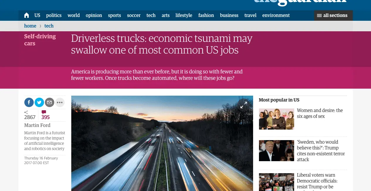Driverless trucks: economic tsunami may swallow one of most common US jobs