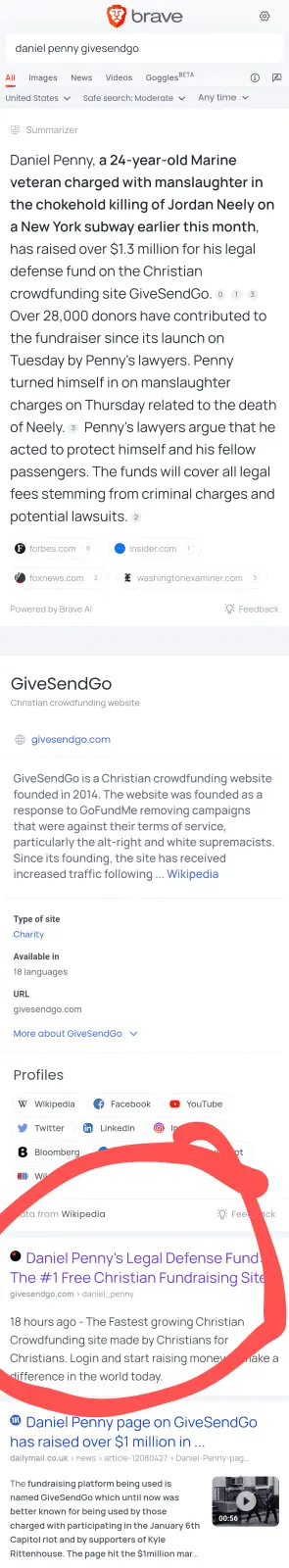 Brave...first result is a direct link to Daniel Penny's GiveSendGo ...