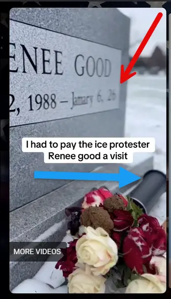 BLUE ARROW: In the opening seconds there is the initial shot of the tombstone with flowers, notice no dog feces and no urn/vase at the base of the flowers. In the later shot there is clearly an urn/vase at the base of the flowers.