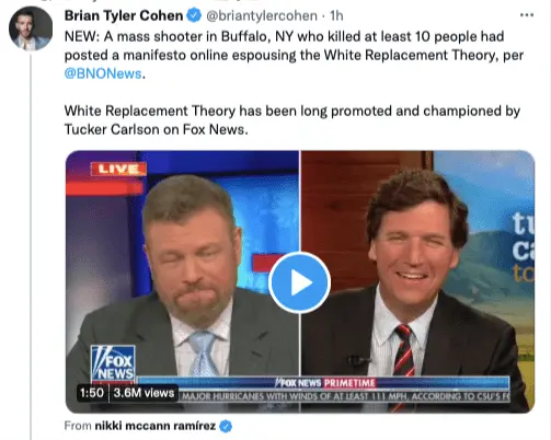 "Carlson's stories about immigration or warnings of demographic change in the US, like the white nationalist "Great Replacement" theory, were a hit, the outlet reported."