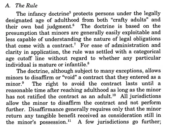 So a contract made on behalf of a real minor, can be voidable by that minor- that is the essence of the Infancy Doctrine- which of course is not what you claim the Infancy Doctrine is at all.