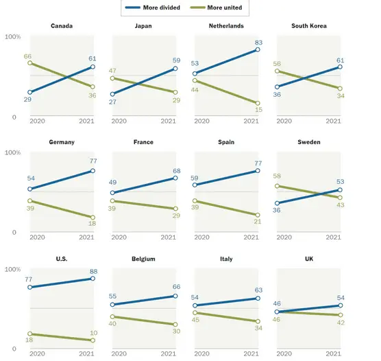 I don't see it changing until we change the voting system to strip the partisans of the key source of their power - the lesser of two evils con game. Ranked choice voting does that, and I think it would, in time, un-divide us. But it may be too late.