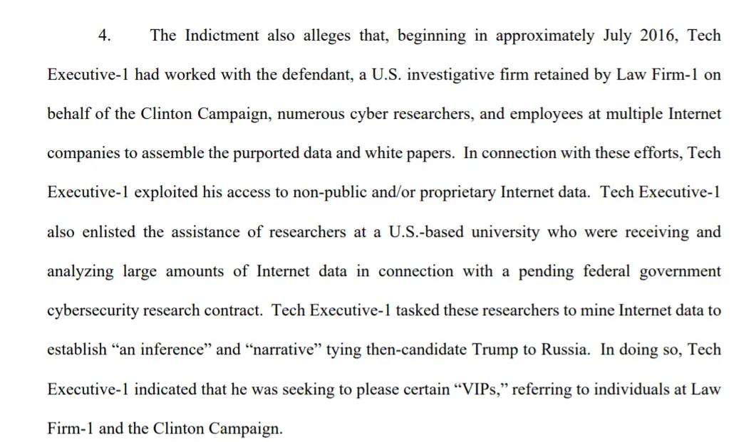Sussmann is in trouble because he supposedly didn’t tell the DoJ that he was working on behalf of Joffe, not the Clinton Campaign.