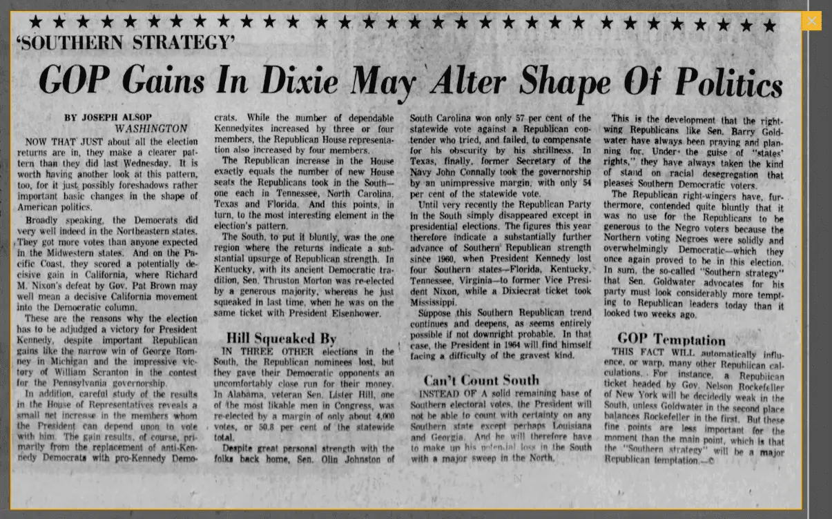 Clipping found in The Birmingham News in Birmingham, Alabama on Nov 14, 1962. southern strategy