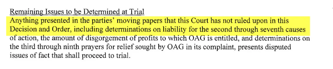 So yes. The other 6 claims would be determined at trial.