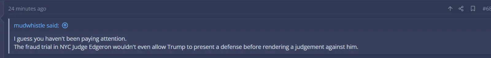 DISCLAIMER: Yes I know this is an E. Jean Carrol thread, I was responding to a claim about the Trump Business Fraud trial that the above poster made.