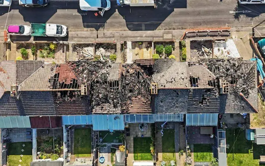 A total of 10 fire engines and 60 firemen worked through the night to control the blaze, which spread through seven out of the eight houses in the terrace.