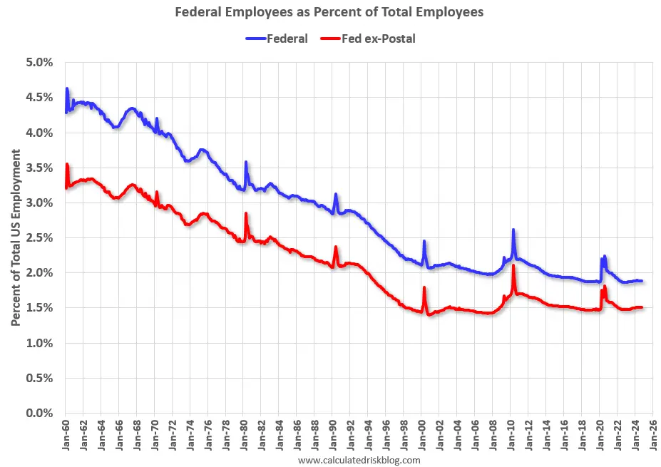 There is another scenario hanging in the wings.Federal employees is a tiny share of US population and decreasing over the decades.