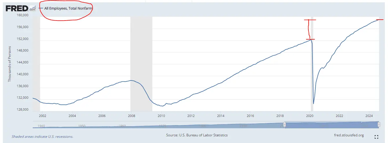 Compare Trump’s peak US born employed in 2019 to last week’s US born employees there are 5M more working Americans born in the US - despite an aging population and the early retirees during covid.